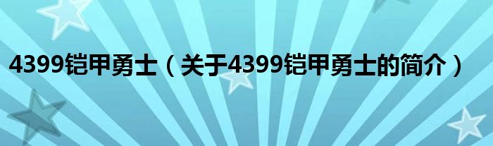 本文關(guān)于4399鎧甲勇士的簡(jiǎn)介就講解完畢,希望對(duì)大家有所幫助。