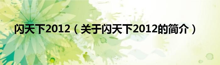 大家好,閃天下2012,關于閃天下2012的簡介很多人還不知道,現在讓我們一起來看看吧!