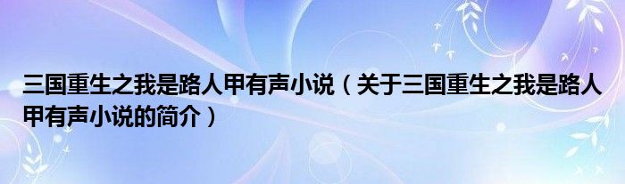 本文關于三國重生之我是路人甲有聲小說的簡介就講解完畢,希望對大家有所幫助。