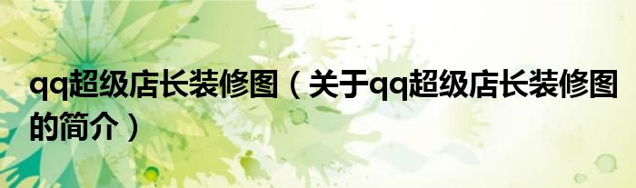 本文關(guān)于qq超級(jí)店長裝修圖的簡介就講解完畢,希望對(duì)大家有所幫助。