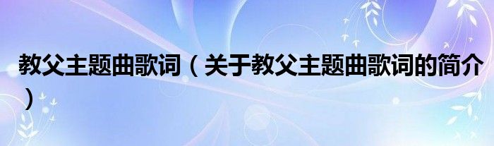 本文關于教父主題曲歌詞的簡介就講解完畢,希望對大家有所幫助。