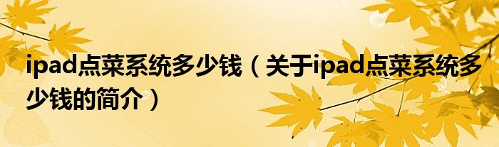 本文關于ipad點菜系統多少錢的簡介就講解完畢,希望對大家有所幫助。