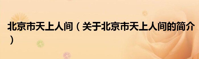 本文關于北京市天上人間的簡介就講解完畢,希望對大家有所幫助。
