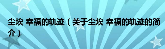 本文關于塵埃 幸福的軌跡的簡介就講解完畢,希望對大家有所幫助。
