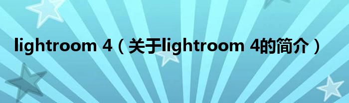 大家好,lightroom 4,關于lightroom 4的簡介很多人還不知道,現在讓我們一起來看看吧!