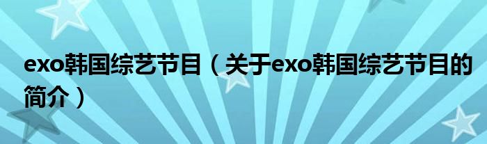 大家好,exo韓國綜藝節(jié)目,關于exo韓國綜藝節(jié)目的簡介很多人還不知道,現(xiàn)在讓我們一起來看看吧!