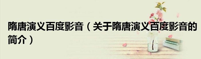 本文關于隋唐演義百度影音的簡介就講解完畢,希望對大家有所幫助。