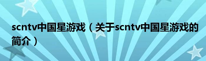 本文關于scntv中國星游戲的簡介就講解完畢,希望對大家有所幫助。