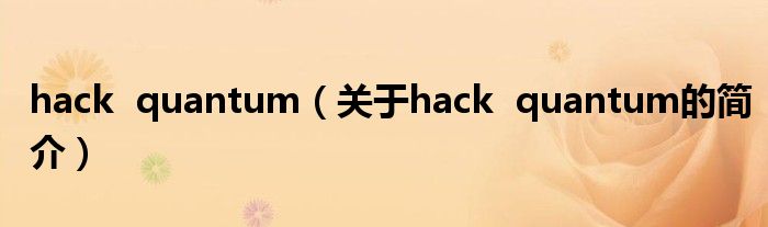 大家好,hack quantum,關于hack quantum的簡介很多人還不知道,現在讓我們一起來看看吧!