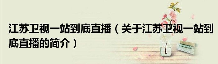 本文關于江蘇衛視一站到底直播的簡介就講解完畢,希望對大家有所幫助。