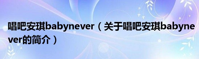 大家好,唱吧安琪babynever,關于唱吧安琪babynever的簡介很多人還不知道,現在讓我們一起來看看吧!