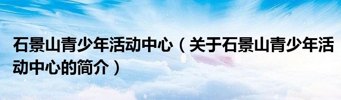 本文關(guān)于石景山青少年活動(dòng)中心的簡(jiǎn)介就講解完畢,希望對(duì)大家有所幫助。