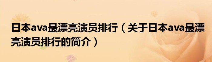 本文關(guān)于日本ava最漂亮演員排行的簡介就講解完畢,希望對大家有所幫助。