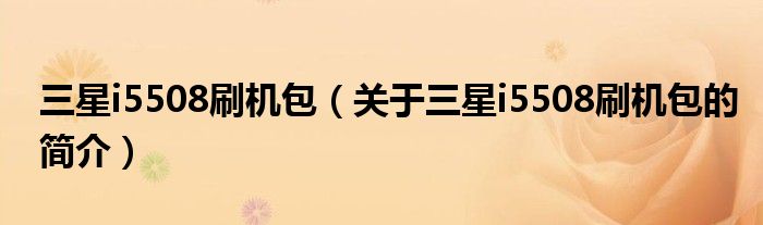 本文關于三星i5508刷機包的簡介就講解完畢,希望對大家有所幫助。