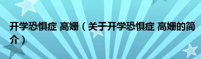 本文關于開學恐懼癥 高姍的簡介就講解完畢,希望對大家有所幫助。