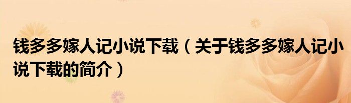 本文關(guān)于錢(qián)多多嫁人記小說(shuō)下載的簡(jiǎn)介就講解完畢,希望對(duì)大家有所幫助。