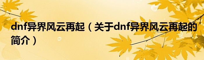 大家好,dnf異界風云再起,關(guān)于dnf異界風云再起的簡介很多人還不知道,現(xiàn)在讓我們一起來看看吧!