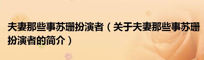 本文關于夫妻那些事蘇珊扮演者的簡介就講解完畢,希望對大家有所幫助。