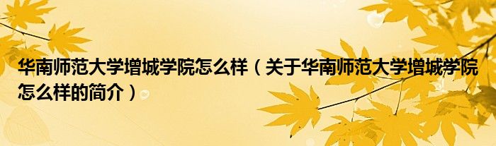 本文關(guān)于華南師范大學增城學院怎么樣的簡介就講解完畢,希望對大家有所幫助。