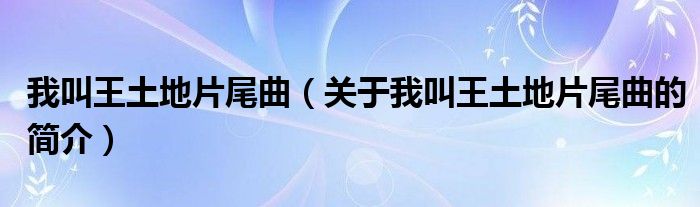 本文關于我叫王土地片尾曲的簡介就講解完畢,希望對大家有所幫助。