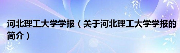 本文關于河北理工大學學報的簡介就講解完畢,希望對大家有所幫助。