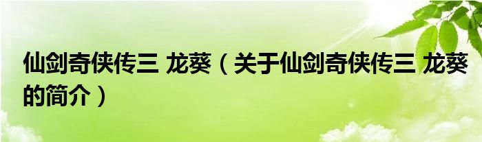 本文關于仙劍奇俠傳三 龍葵的簡介就講解完畢,希望對大家有所幫助。