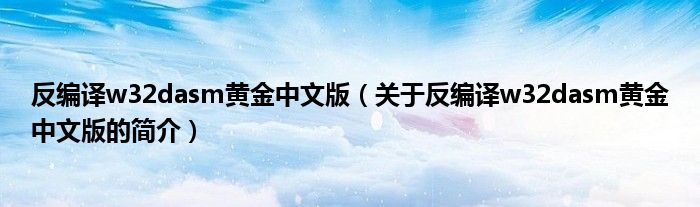 本文關于反編譯w32dasm黃金中文版的簡介就講解完畢,希望對大家有所幫助。