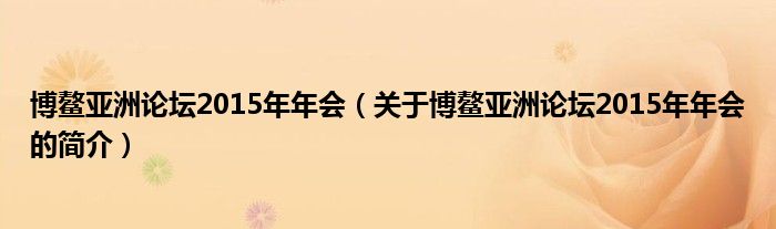 本文關于博鰲亞洲論壇2015年年會的簡介就講解完畢,希望對大家有所幫助。