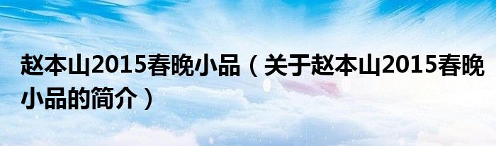本文關于趙本山2015春晚小品的簡介就講解完畢,希望對大家有所幫助。