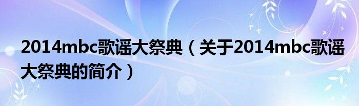 本文關于2014mbc歌謠大祭典的簡介就講解完畢,希望對大家有所幫助。