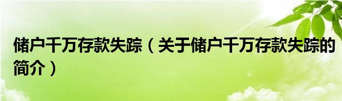 本文關(guān)于儲(chǔ)戶(hù)千萬(wàn)存款失蹤的簡(jiǎn)介就講解完畢,希望對(duì)大家有所幫助。