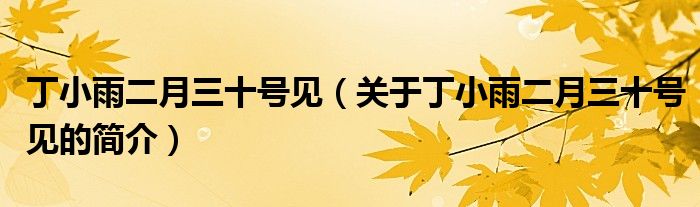 本文關于丁小雨二月三十號見的簡介就講解完畢,希望對大家有所幫助。