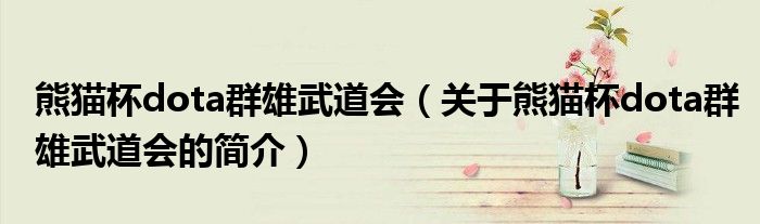 本文關(guān)于熊貓杯dota群雄武道會(huì)的簡(jiǎn)介就講解完畢,希望對(duì)大家有所幫助。
