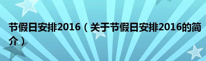 本文關于節(jié)假日安排2016的簡介就講解完畢,希望對大家有所幫助。