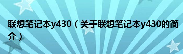 本文關(guān)于聯(lián)想筆記本y430的簡介就講解完畢,希望對大家有所幫助。