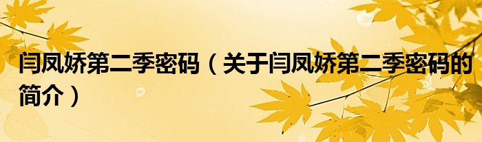 本文關于閆鳳嬌第二季密碼的簡介就講解完畢,希望對大家有所幫助。