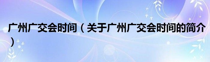 本文關于廣州廣交會時間的簡介就講解完畢,希望對大家有所幫助。