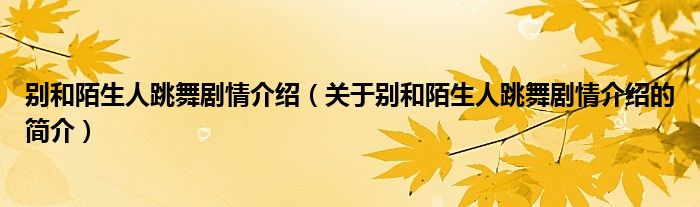 本文關于別和陌生人跳舞劇情介紹的簡介就講解完畢,希望對大家有所幫助。