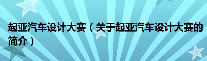 本文關(guān)于起亞汽車設(shè)計(jì)大賽的簡介就講解完畢,希望對大家有所幫助。