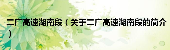 本文關于二廣高速湖南段的簡介就講解完畢,希望對大家有所幫助。