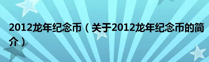 本文關于2012龍年紀念幣的簡介就講解完畢,希望對大家有所幫助。