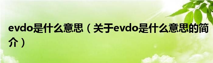 本文關(guān)于evdo是什么意思的簡(jiǎn)介就講解完畢,希望對(duì)大家有所幫助。