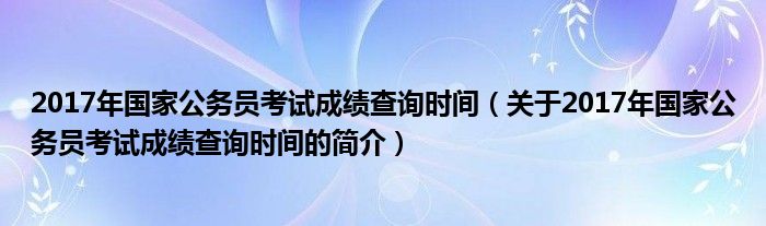 本文關(guān)于2017年國家公務(wù)員考試成績查詢時(shí)間的簡介就講解完畢,希望對(duì)大家有所幫助。