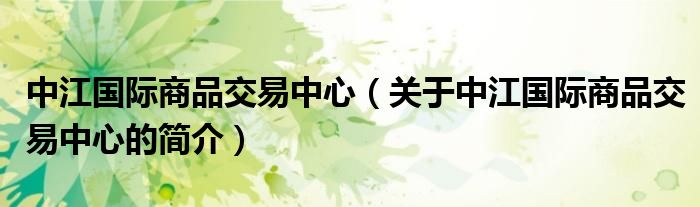 本文關(guān)于中江國際商品交易中心的簡介就講解完畢,希望對大家有所幫助。