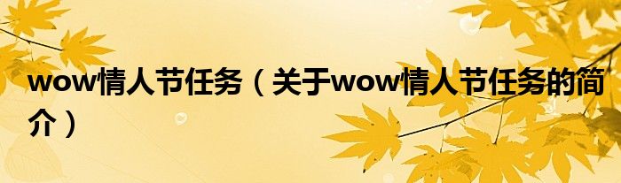 本文關于wow情人節任務的簡介就講解完畢,希望對大家有所幫助。