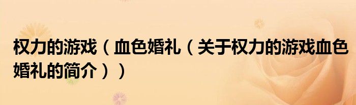 大家好,權力的游戲 血色婚禮,關于權力的游戲 血色婚禮的簡介很多人還不知道,現在讓我們一起來看看吧!