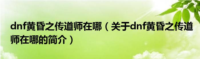 本文關于dnf黃昏之傳道師在哪的簡介就講解完畢,希望對大家有所幫助。