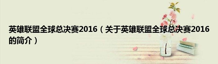 1、2016英雄聯盟全球總決賽,統稱全球總決賽。