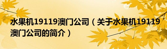 大家好,水果機19119澳門公司,關于水果機19119澳門公司的簡介很多人還不知道,現在讓我們一起來看看吧!