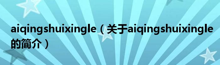 本文關于aiqingshuixingle的簡介就講解完畢,希望對大家有所幫助。